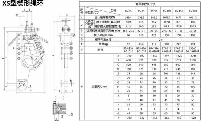 楔形繩環(huán)基本參數(shù)及尺寸
