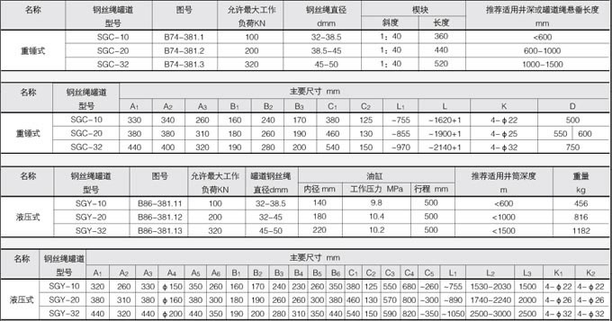 罐道繩液壓拉緊裝置技術參數(shù)